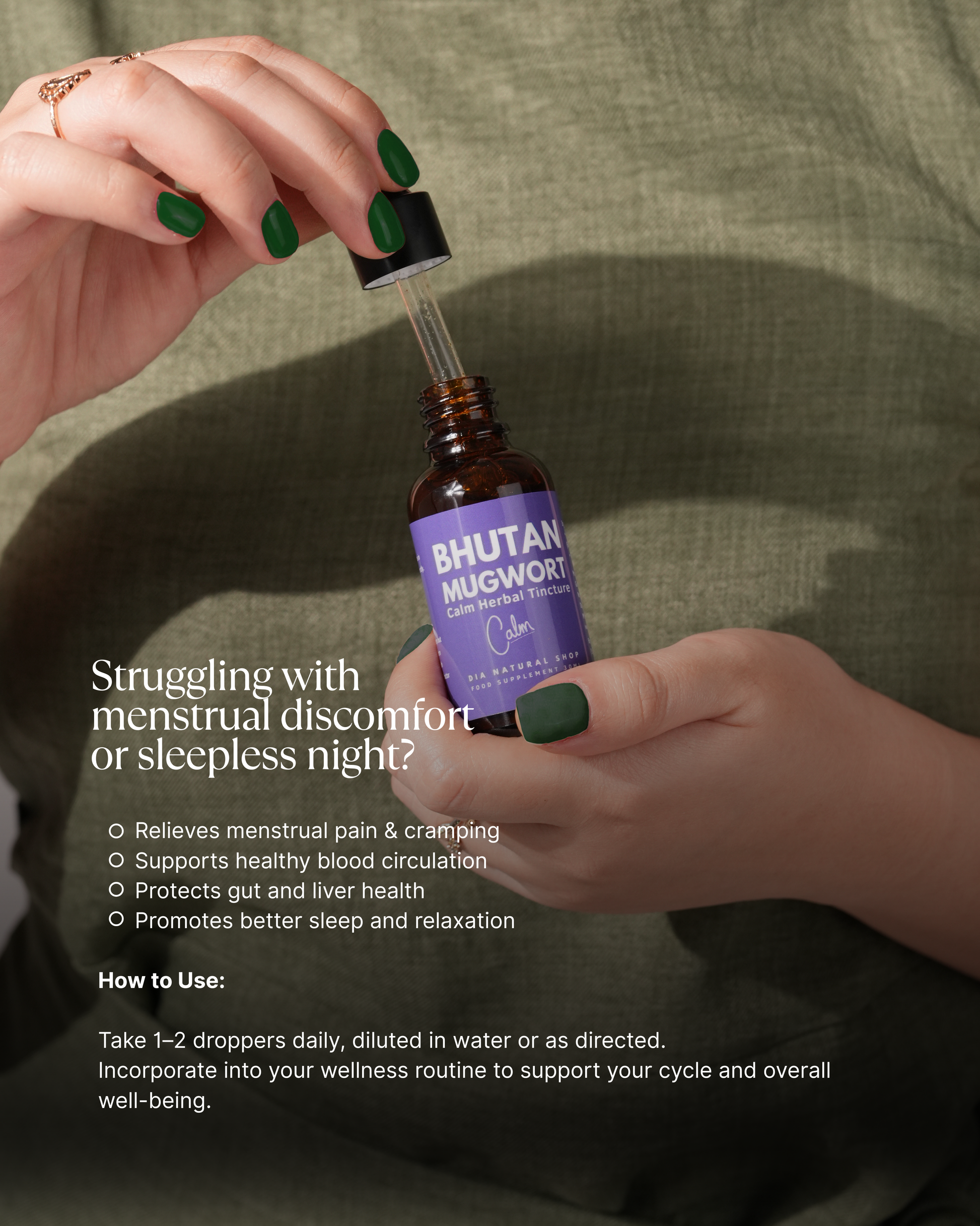 不丹艾草酊剂,采用野生艾草制成,并以纯苹果醋萃取。艾草因其促进消化、放松身心和平衡荷尔蒙的功效而备受推崇,是一种用途广泛的草药,有助于整体健康。